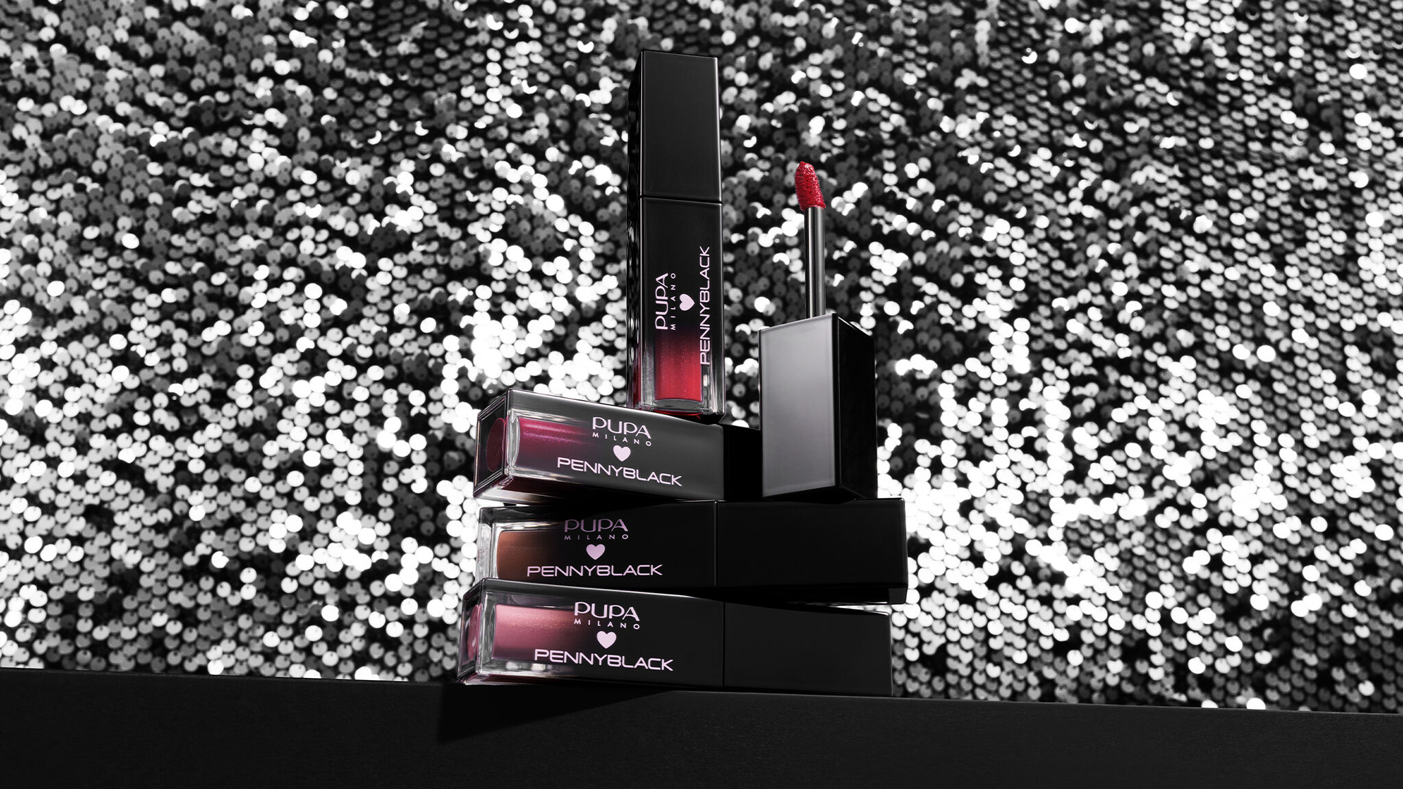 La collection Pupa <3 Pennyblack est l’alliée parfaite pour briller pendant les fêtes ! Un tourbillon d’étincelles grâce à Rouge à lèvres liquide transformiste, accessoire pour sac avec porte-maquillage, palette 6 fards à paupières à finitions multiples.. Inspirée de l’énergie des fêtes exclusives des métropoles du monde entier, cette collection présente des contrastes chromatiques uniques qui mettent en valeur un maquillage ultra-lumineux, parfait pour les soirées de Noël et pour fêter au mieux l’arrivée de la nouvelle année ! Le mot d’ordre pour les fêtes ? Il s’agit bien évidemment de : BRILLER !